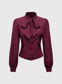 Kawaii Versatile Elegant Commuter Solid Color Bowknot Blouse For Women