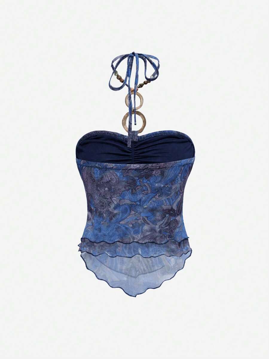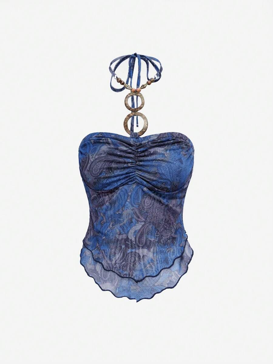 J-Fashion Vintage Cashew Flower Print Strapless Backless Vest, Western Style For Women