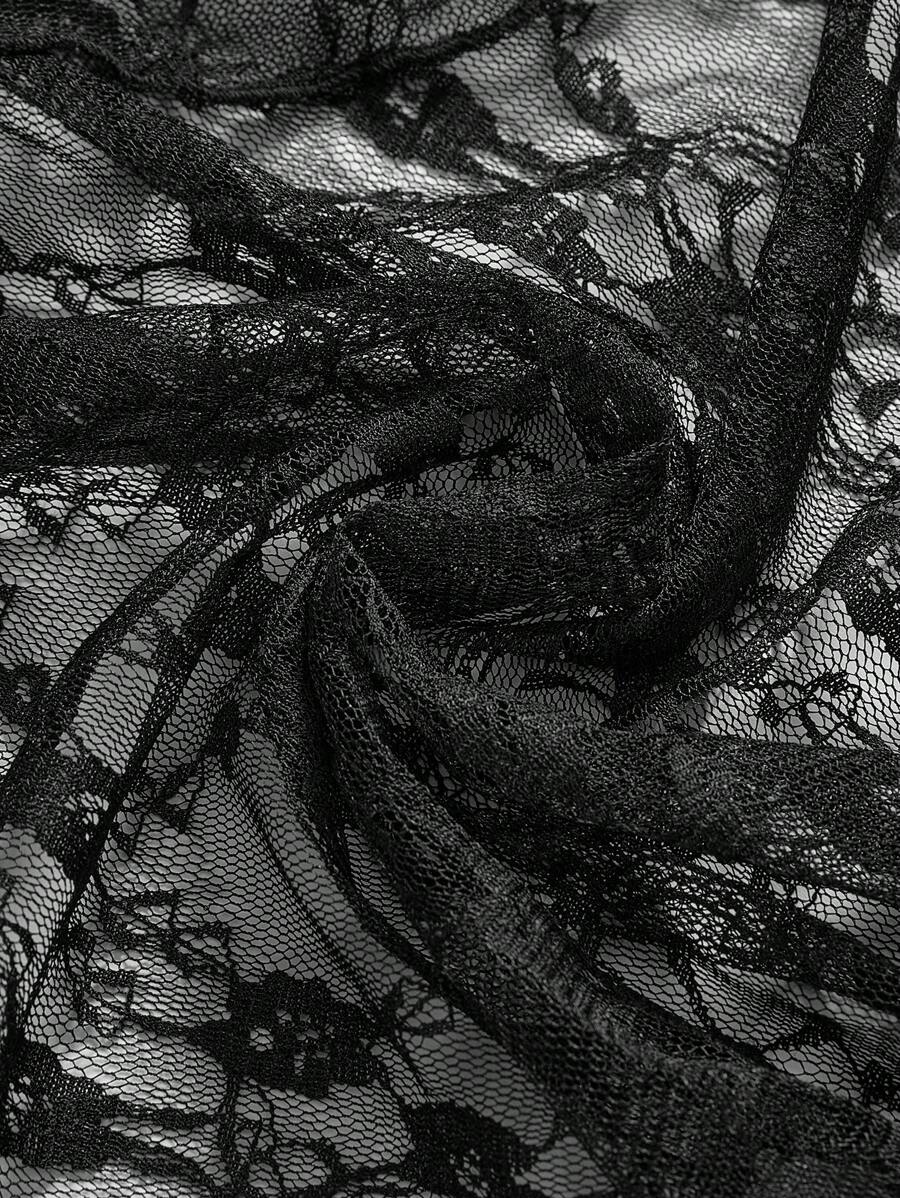 Vintage Dark Gothic Ruffled Lace Patchwork Bell Sleeve Women Slim Fit Top