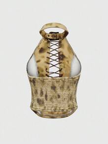 Hippie Vintage Denim Cami Strap Animal Print Sexy Crop Top For Women