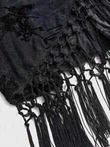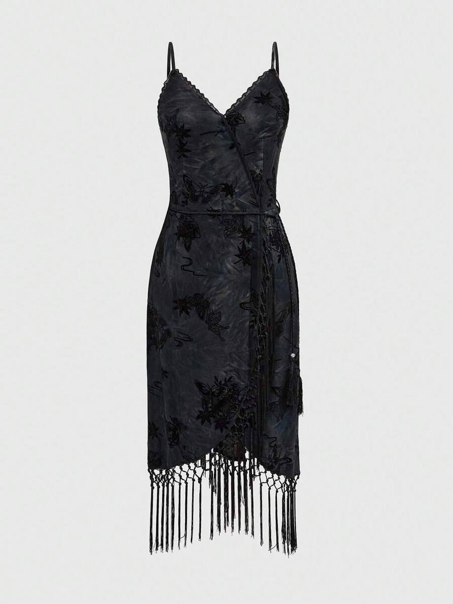 Goth Vintage Flocked Floral Patchwork Fringe Hem Women's Slip Dress