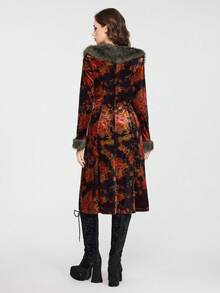 EDITION Vintage Floral Print Plush Patchwork Cardigan Jacket For Women, Halloween