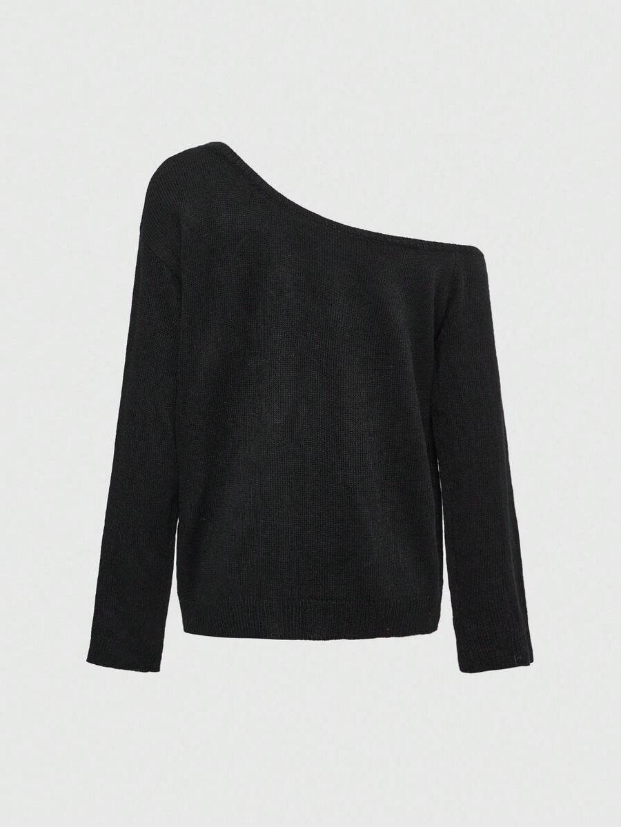 Hippie Vintage Halloween Black Cat Print Oblique Neck Unisex Sweater