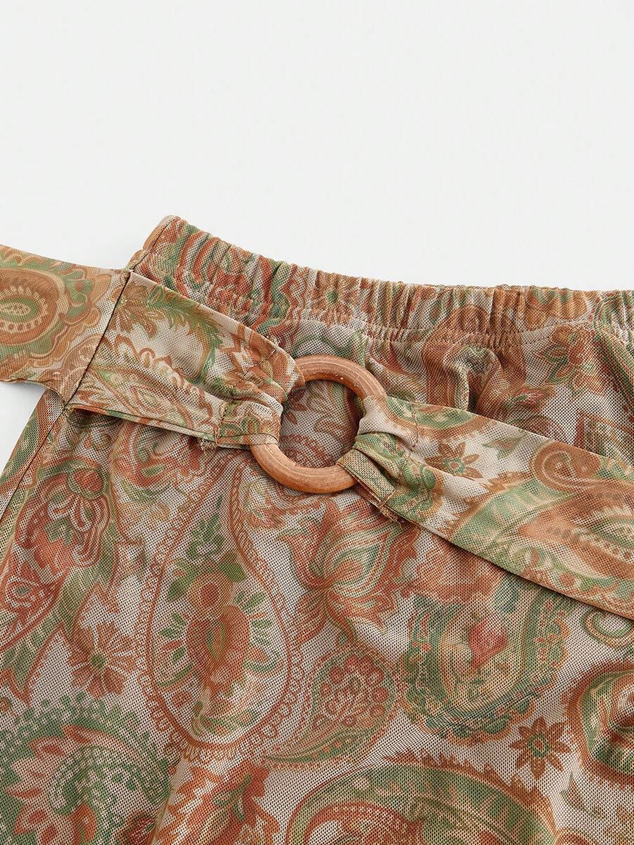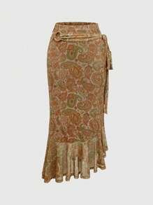 Vintage Hippie Style Ruffle Trim Tie-Up Fish Tail Skirt