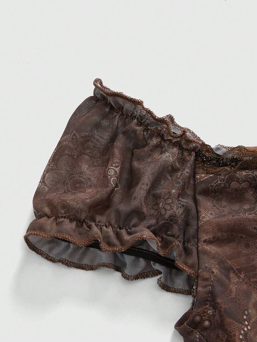 Vintage Hippie V-Neck Bow Decor Contrast Ditsy Floral Slim Fit Versatile Women T-Shirt