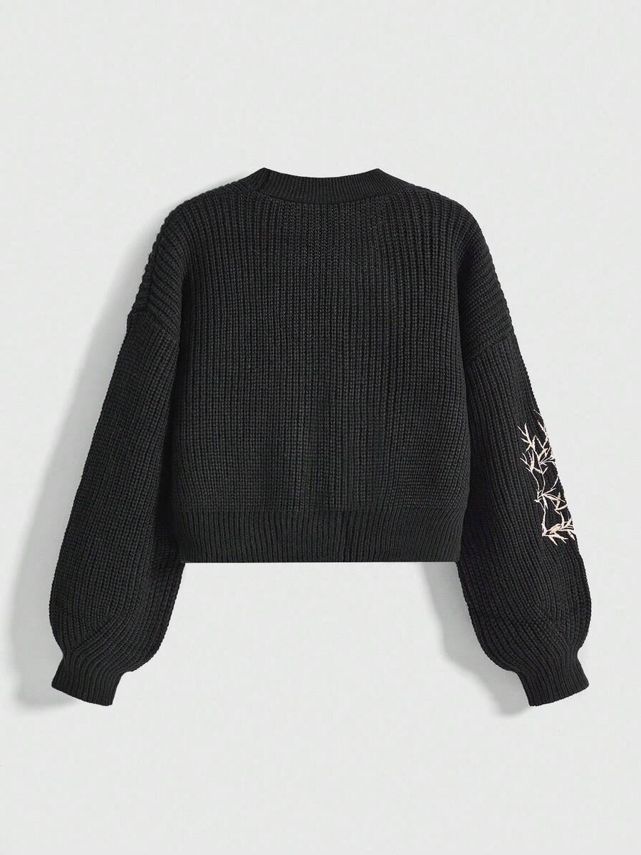 Vintage New Chinese Style Tiger & Bamboo Leaf & Chinese Calligraphy Embroidered Knit Cardigan