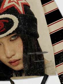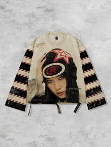 Street Life Vintage Street Style Distressed Saint Graphic Long Sleeve Crew Neck Men's T-Shirt