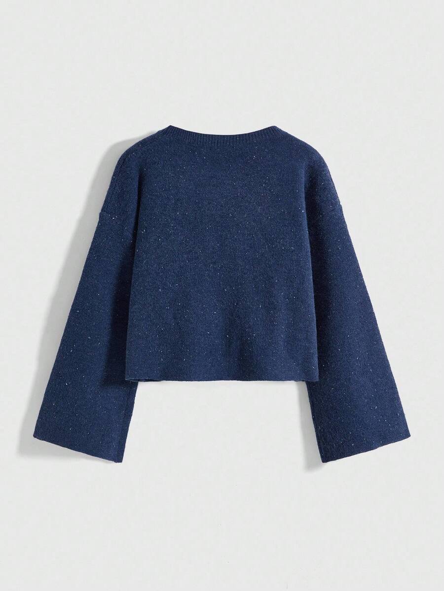 Fairycore Vintage Sun & Moon Totem Navy Blue Short Crew Neck Knit Sweater, Loose & Relaxed Style For Women