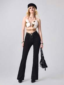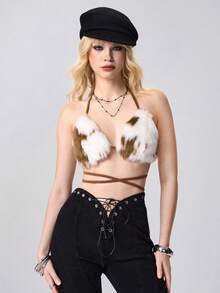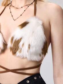 J-Fashion Vintage Wild West Cowgirl Animal Print Fuzzy Bra Top For Women