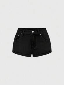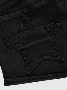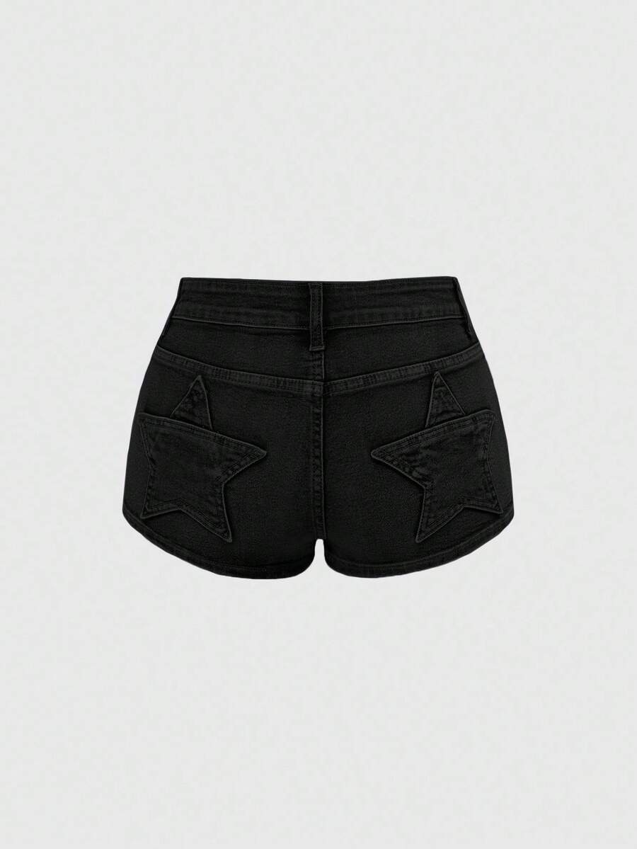 Grunge Punk Vintage Y2K Women's Super Low Waist Ultra Short Denim Shorts With Rear Pocket Star Patch