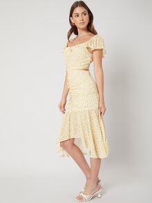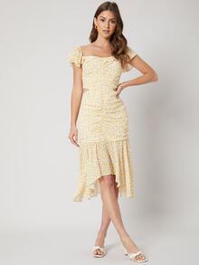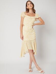 Viscose Fitted Gathered Dress