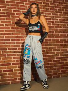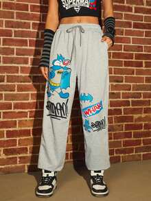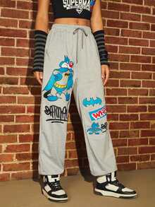 WB 100th | ROMWE Cartoon Graphic Drawstring Waist Sweatpants