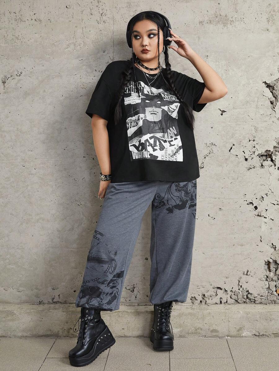 WB 100th | ROMWE Plus Figure Graphic Drop Shoulder Tee