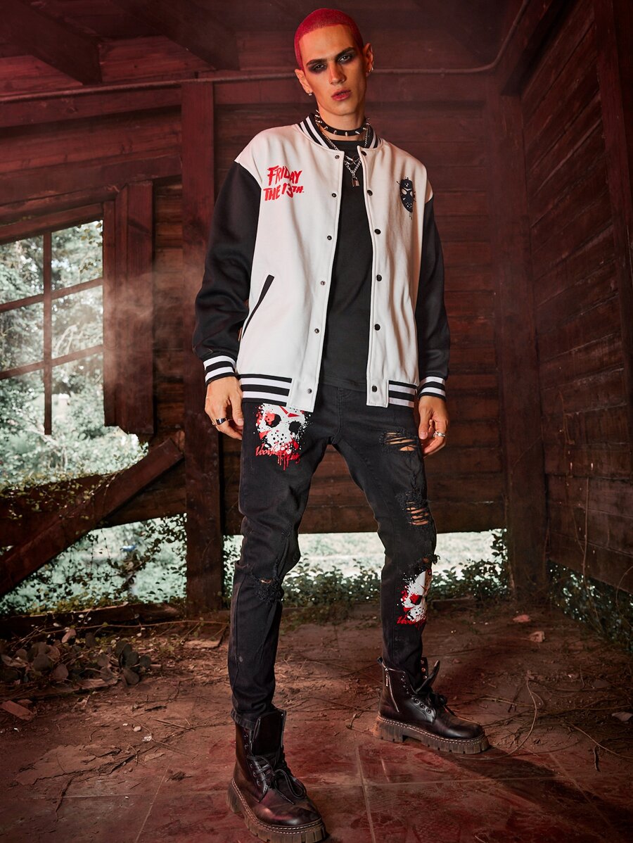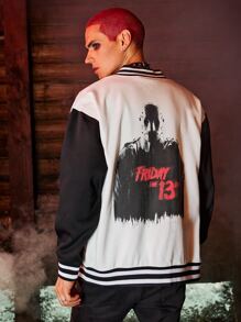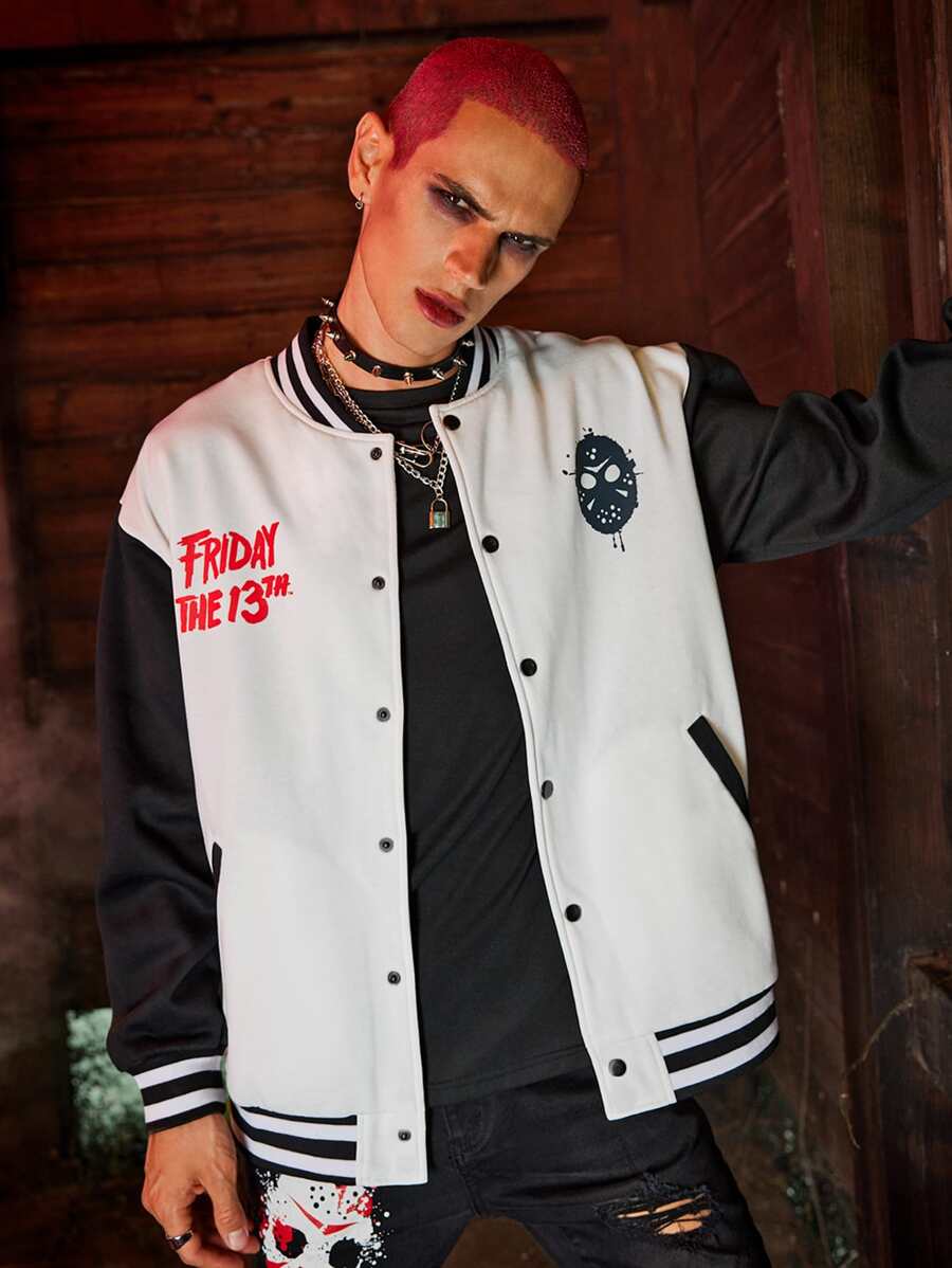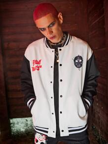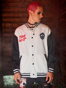 WB Horror | ROMWE Guys Letter Graphic Color Block Varsity Jacket