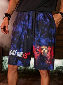 WB Horror | ROMWE Guys Letter Graphic Tie Dye Shorts