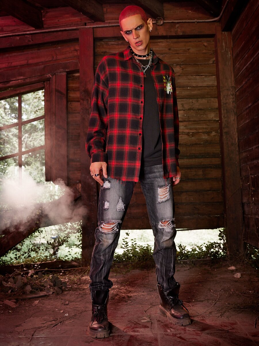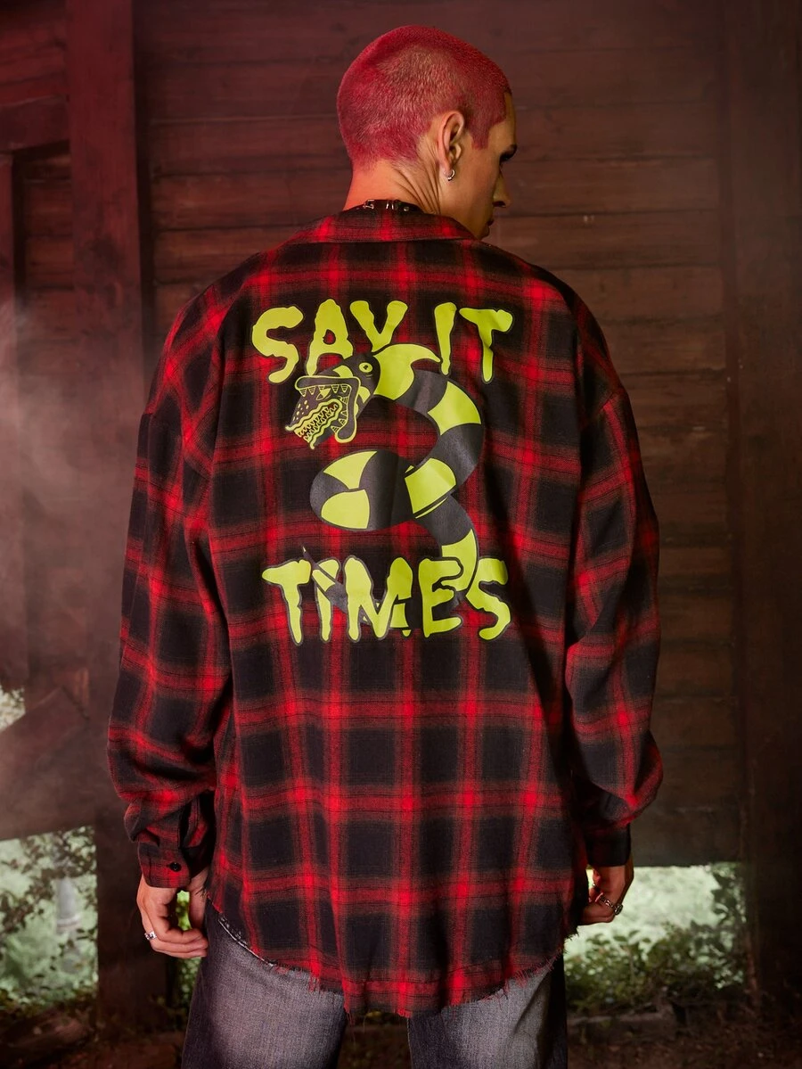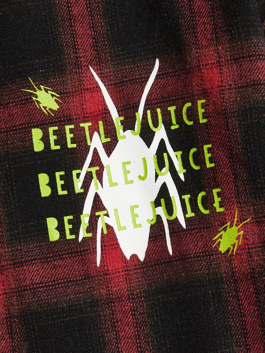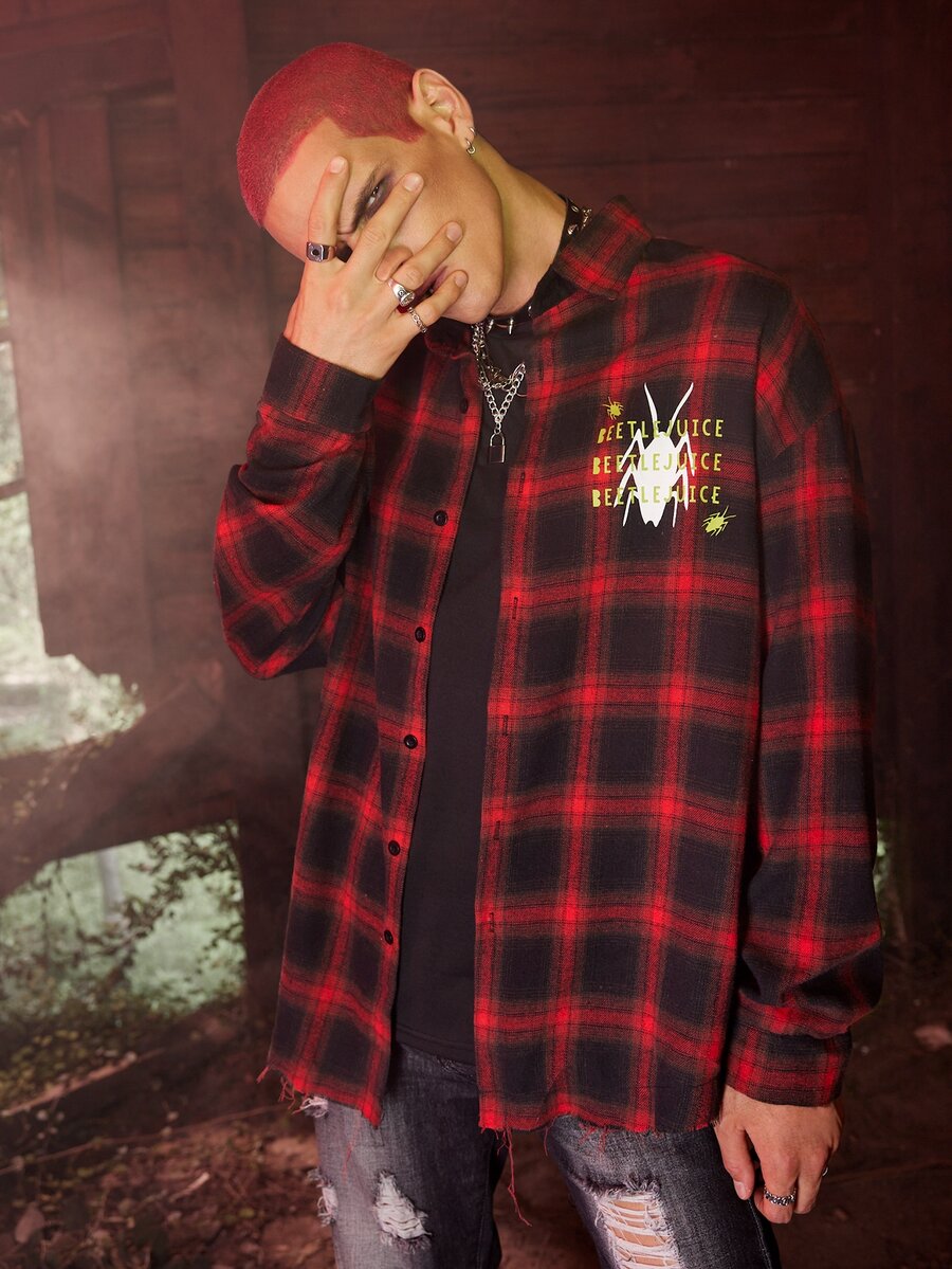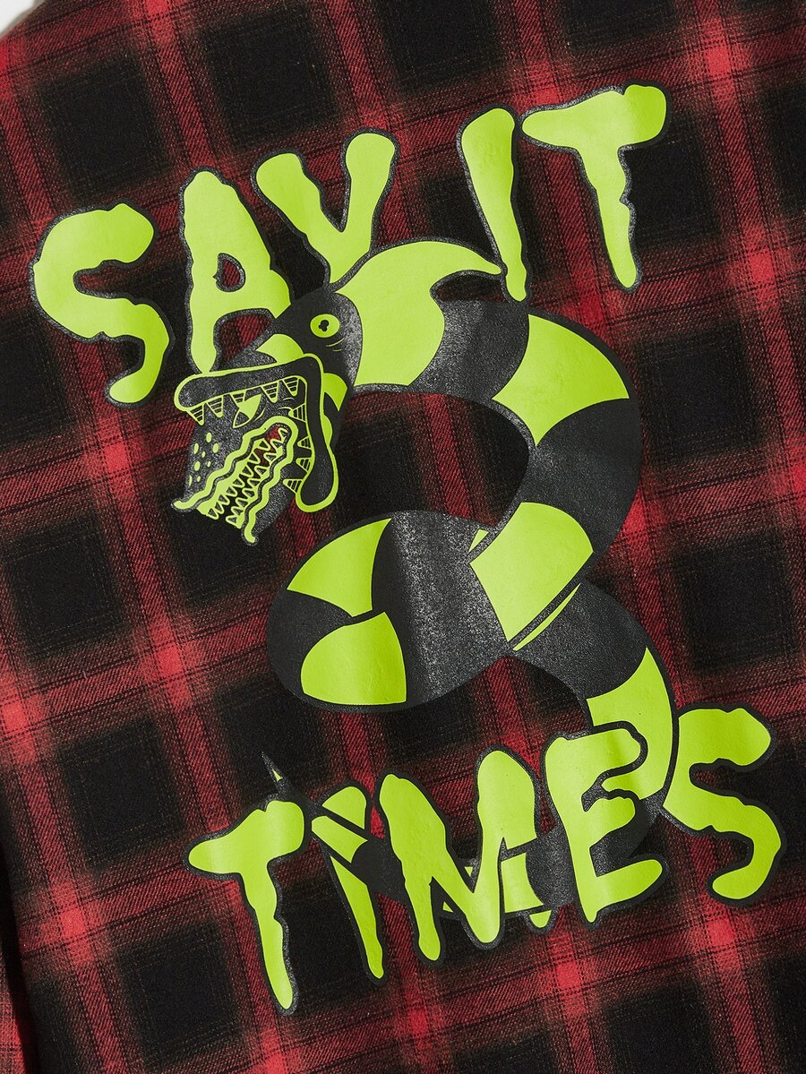 WB Horror | ROMWE Guys Plaid Letter Graphic Shirt