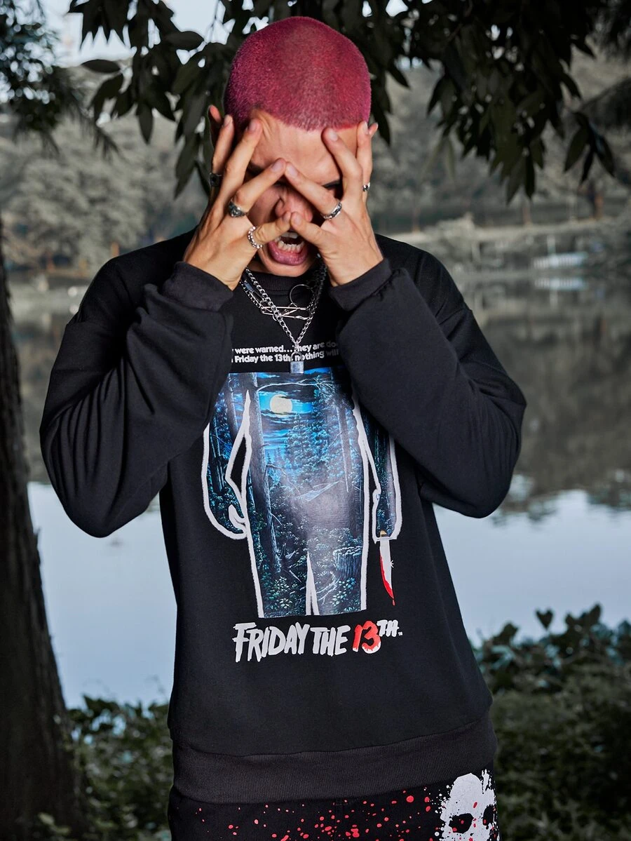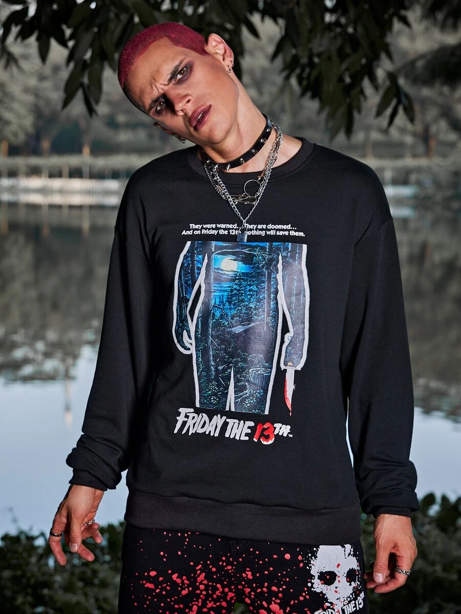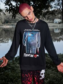 WB Horror | ROMWE Guys Slogan Figure Graphic Sweatshirt