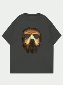 WB Horror | ROMWE Men's Casual Loose T-Shirt With Mask Print And Dropped Shoulders, Summer