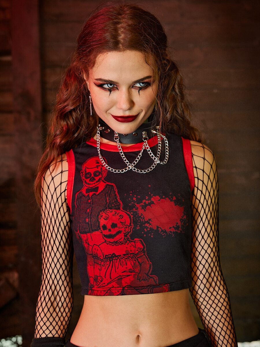 WB Horror | ROMWE Skull Graphic Contrast Binding Tank Top