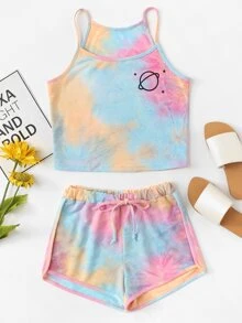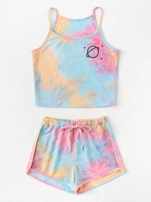 Water Color Cami Top With Drawstring Waist Shorts