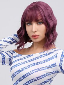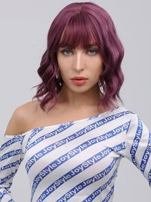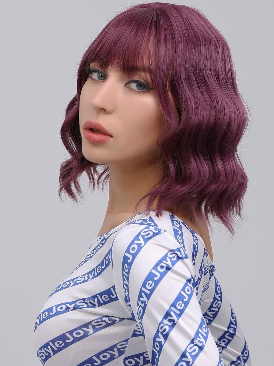 Water Wave With Bangs Shot Bob Wigs Orange Color 14 Inch Deep Wave Heat Resistant Fiber Red Synthetic Wigs For Women Halloween Christmas Party Daily Use