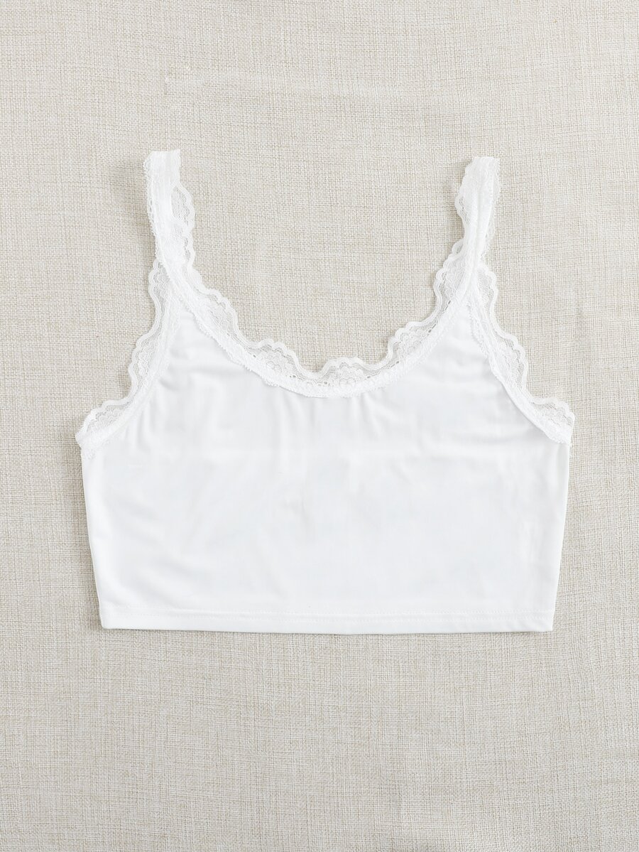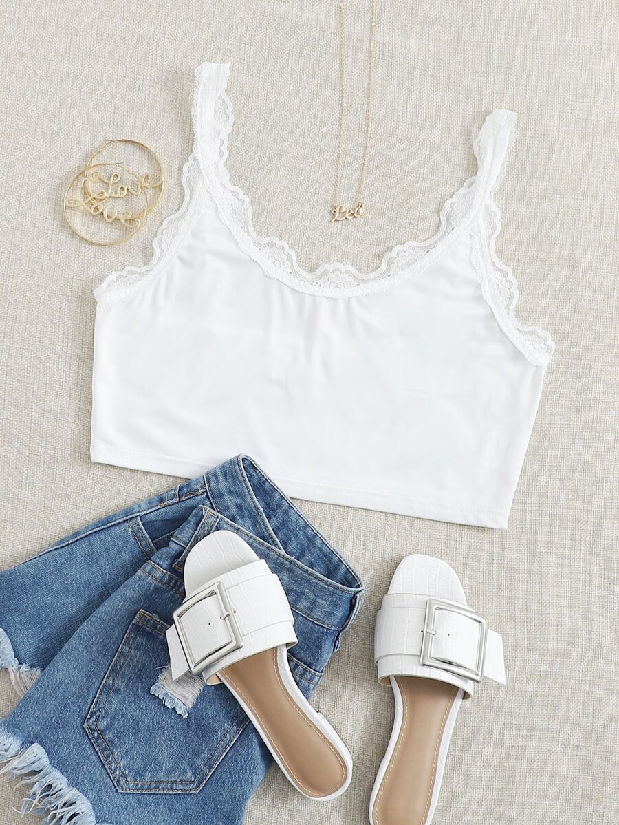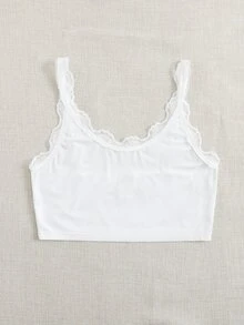 White Lace Trim Crop Top