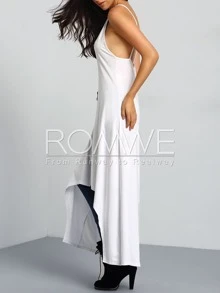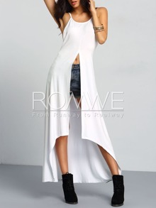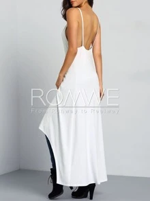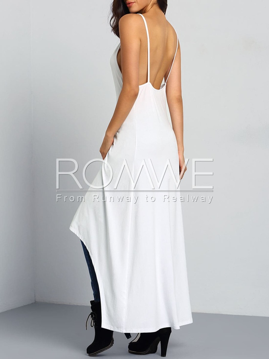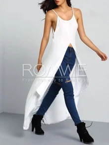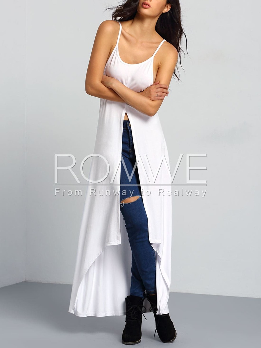White Spaghetti Strap Backless Split High Low T-Shirt