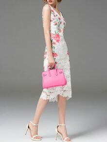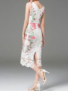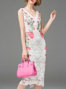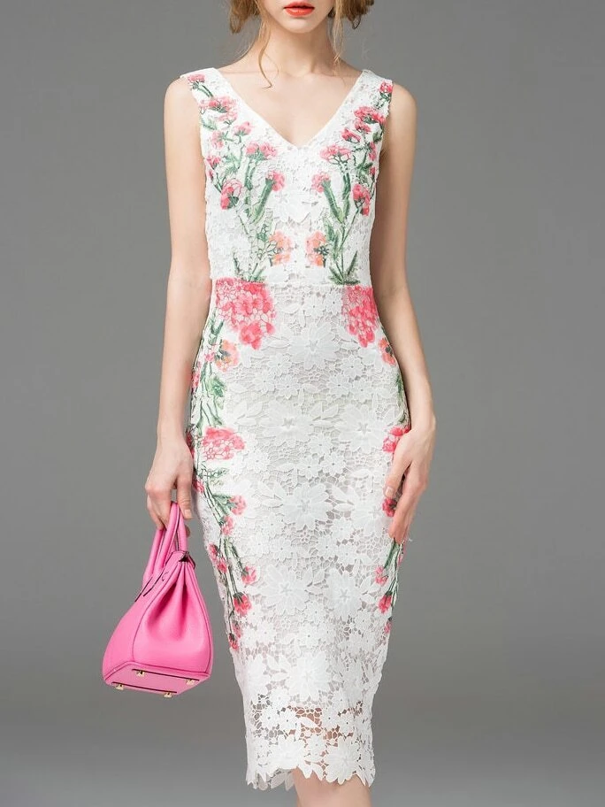 White V Neck Backless Sheath Lace Dress
