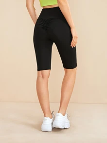 Wide Band Waist Ruched Cycling Shorts