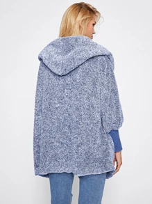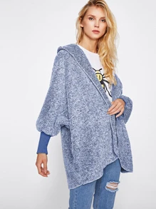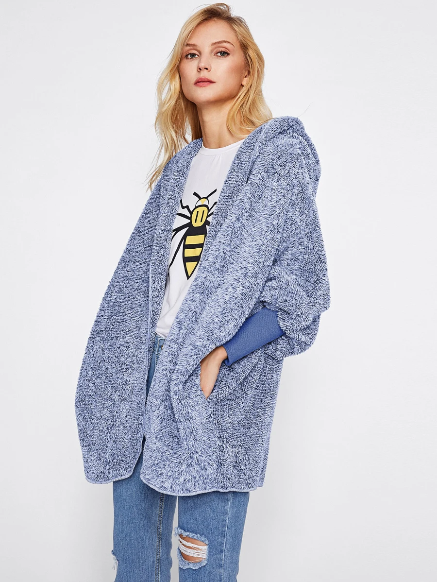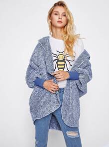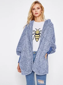 Wide Cuff Hooded Dolman Sleeve Fluffy Coat