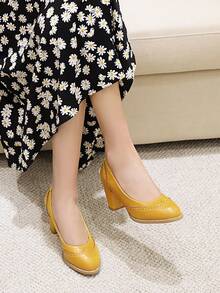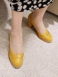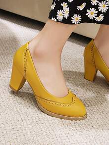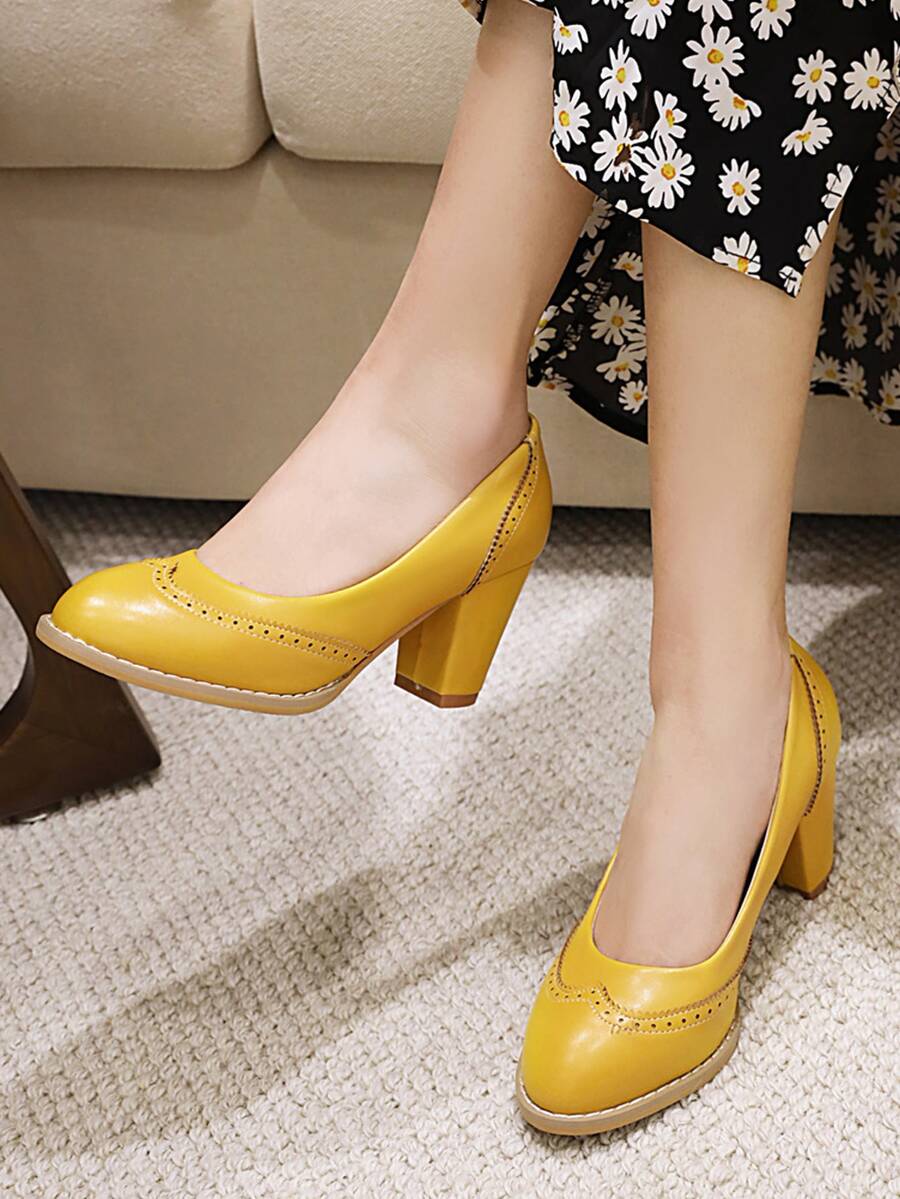 Wingtip Detail Chunky Court Heels
