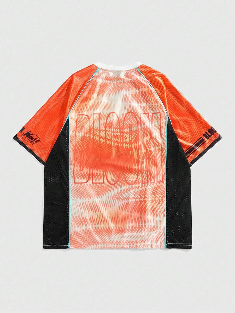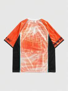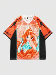 Winx Club X ROMWE Men's Casual Street Cartoon Character & Letter Print Contrast Color V-Neck Short Sleeve T-Shirt
