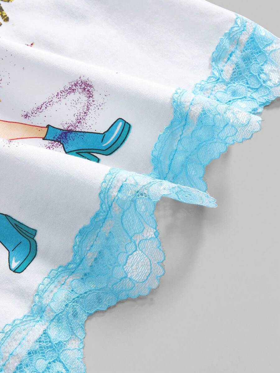 Winx Club X ROMWE Y2K Style Women's Lace Camisole Top With Floral Print, Suitable For Spring/Summer