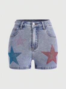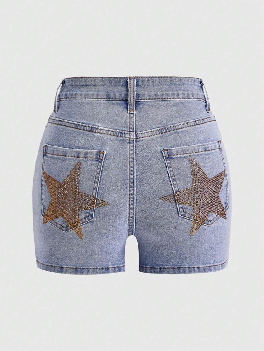 Street Life Women'S Rhinestone Decor Starry Pattern Denim Shorts