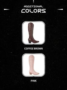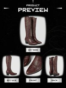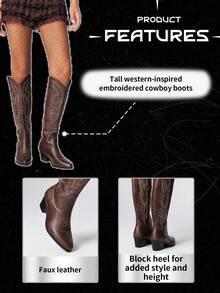 Fairycore Women's 2025 Spring Autumn New Nature-Inspired Coffee Brown Embroidery Western Boot, Outdoor Fashion Slip-On Knee-High Boots