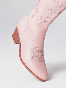Fairycore Women's 2025 Spring/Autumn New Cute Pink Embroidered Western Boots, Leather Outdoor Fashion Slip-On Knee-High Boots