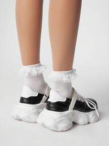 Grunge Punk Women's Black Mary Jane Leather Shoes, Niche Platform Ballet Flats With Bow, Casual Sneakers, Hook-And-Loop, Japanese JK Uniform Style, Wedge & Platform Pumps