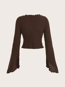 Hippie Women's Casual Solid Color Bell Sleeve Tie Front Blouse, Autumn