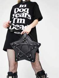 Grunge Punk Fashionable Women's Black Star Printed Crossbody Bag