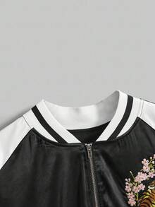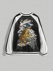 J-Fashion Women's Contrast Color Patchwork Floral & Tiger Embroidery Jacket