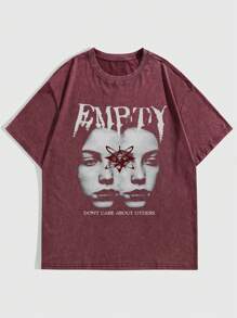 Grunge Punk Women's Dark Punk Font Anti-Social Double Faces Print Loose Fit Random Floral Distressed T-Shirt