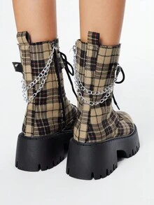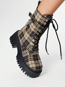 Grunge Punk Women's Dark Punk Gothic Lace-Up Motorcycle Boots, Platform Ankle Boots And Short Boots