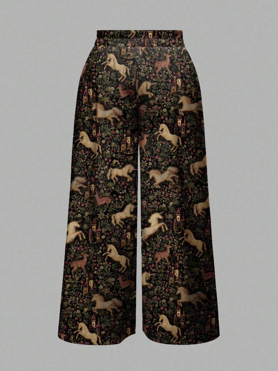 Fairycore Women's Elegant Gothic, Medieval, Nature-Inspired, Vintage Floral, Mushroom Print Pants, Suitable For Autumn/Winter