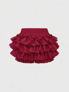 Kawaii Women's Fashion Solid Color Contrast Lace Tiered Layer Shorts