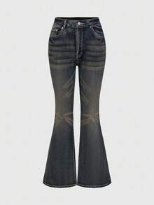 Goth Women's Fashionable Vintage Casual Rhinestone Wing Embroidered Low Waist Flare Jeans