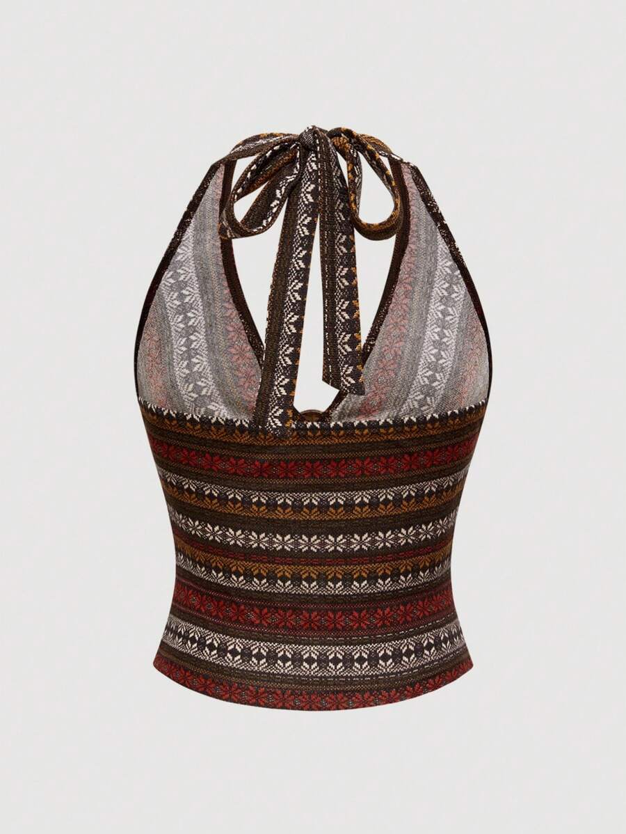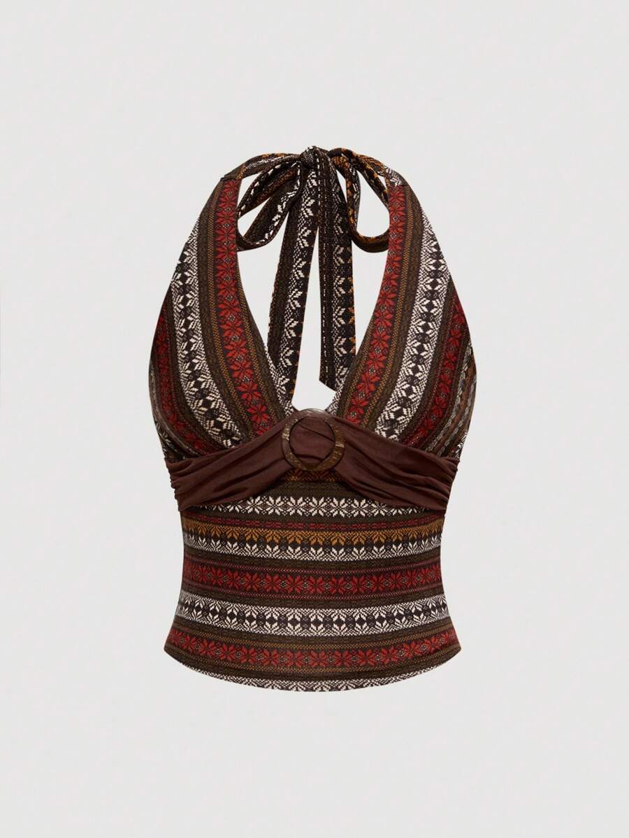 Hippie Women's Floral Pattern Circle Connected Fashion Halter Neck Tank Top