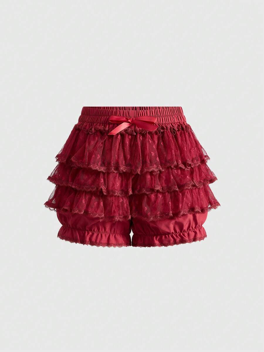 Women's Gothic Lolita Multi-Layer Cake Skirt, White Bow Patchwork Pumpkin Lantern Shorts, Spring Wedding Outfits
