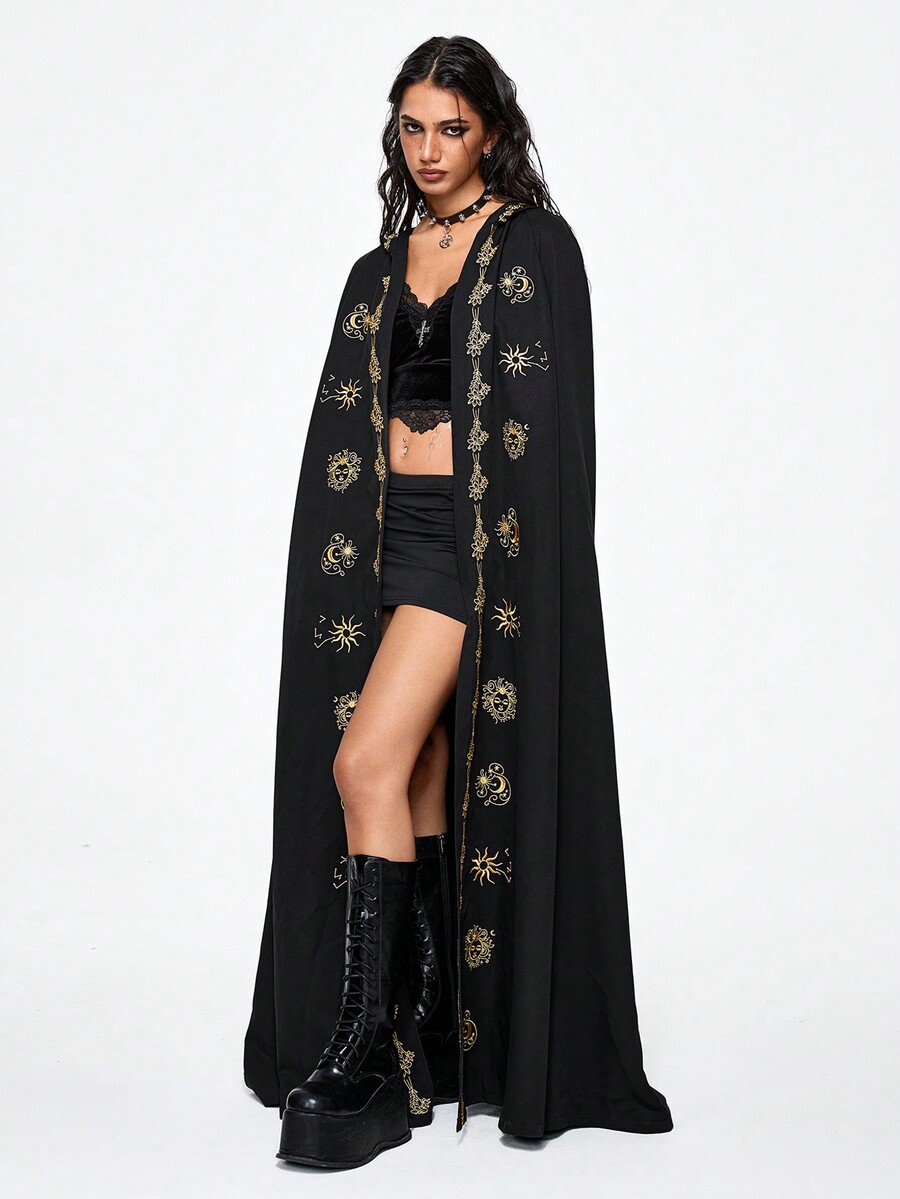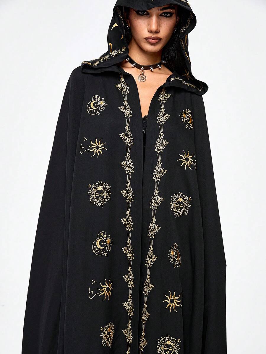 Hippie Women's Halloween Cosplay Embroidered Hooded Cloak Jacket