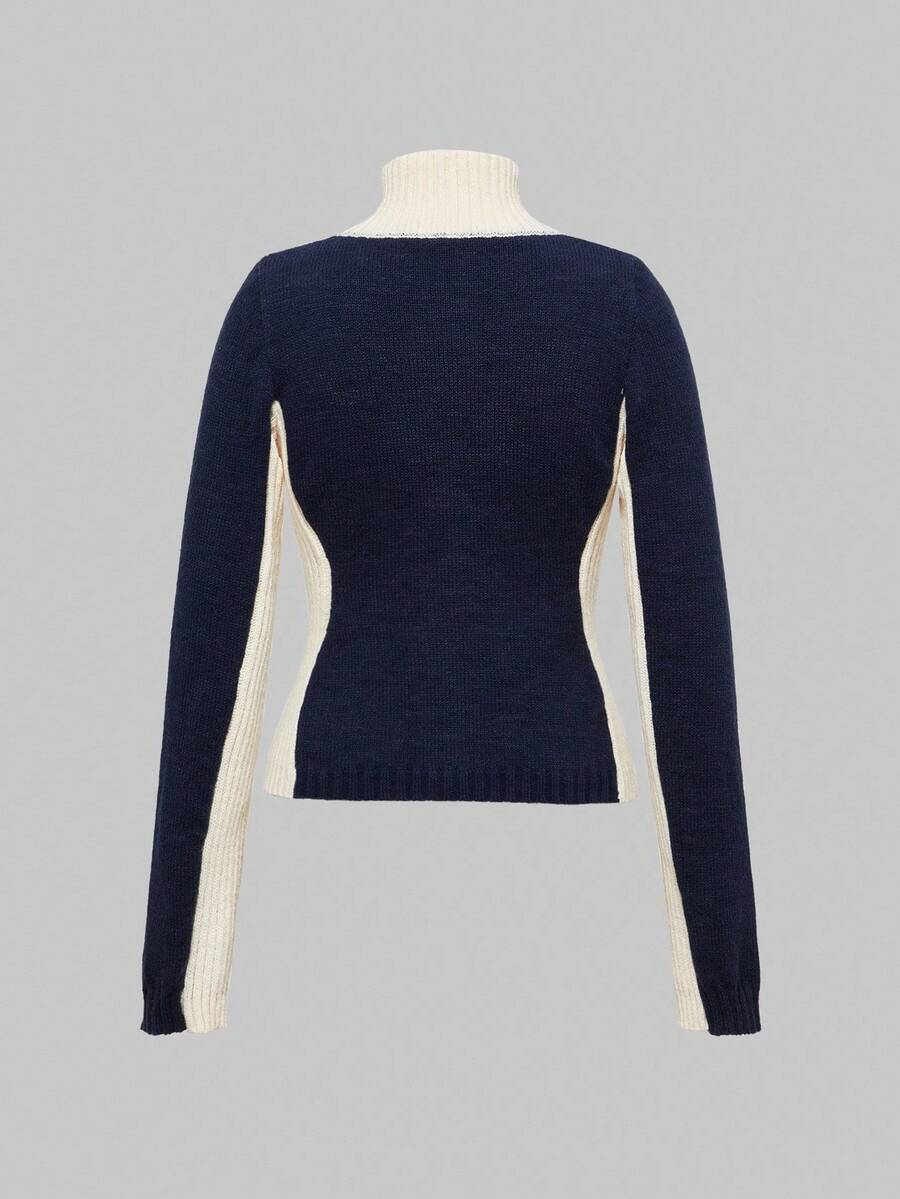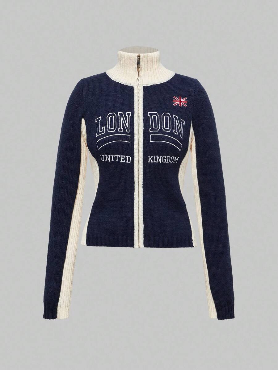 Women's London Flag Embroidery Pattern Tight Y2K Vintage Contrast Color Knit Cardigan