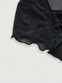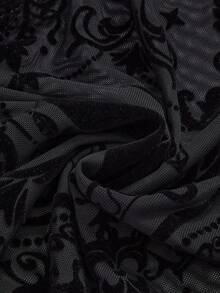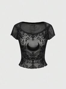 ROMWE Avant Women's Moon Flocked Sheer Mesh Short Sleeve Fashionable Blouse, Halloween
